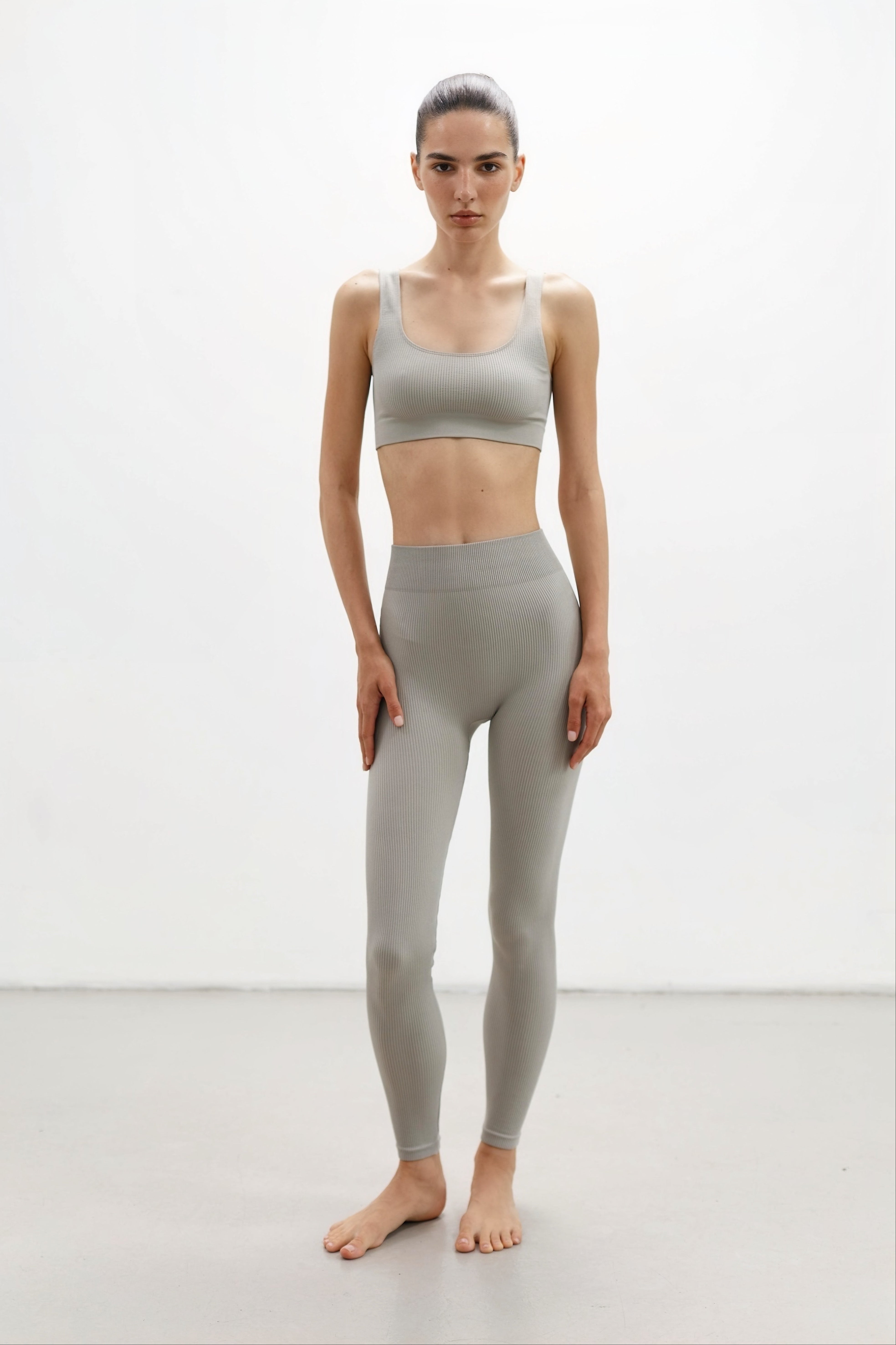 Легінси в рубчик на вісокій посадці, виготовлені із м’якої та еластичної мікрофібри. Тканина повторює рухи тіла, дарує відчуття легкості та комфорту.