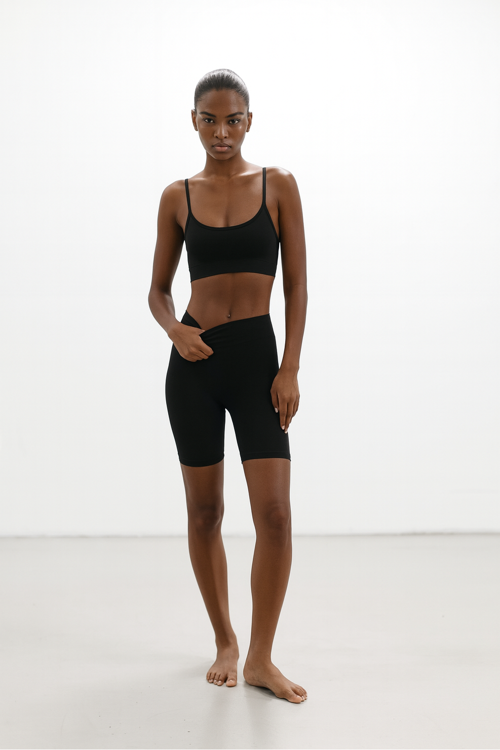 Велосипедки на високій посадці, виготовлені із щільної матової мікрофібри.