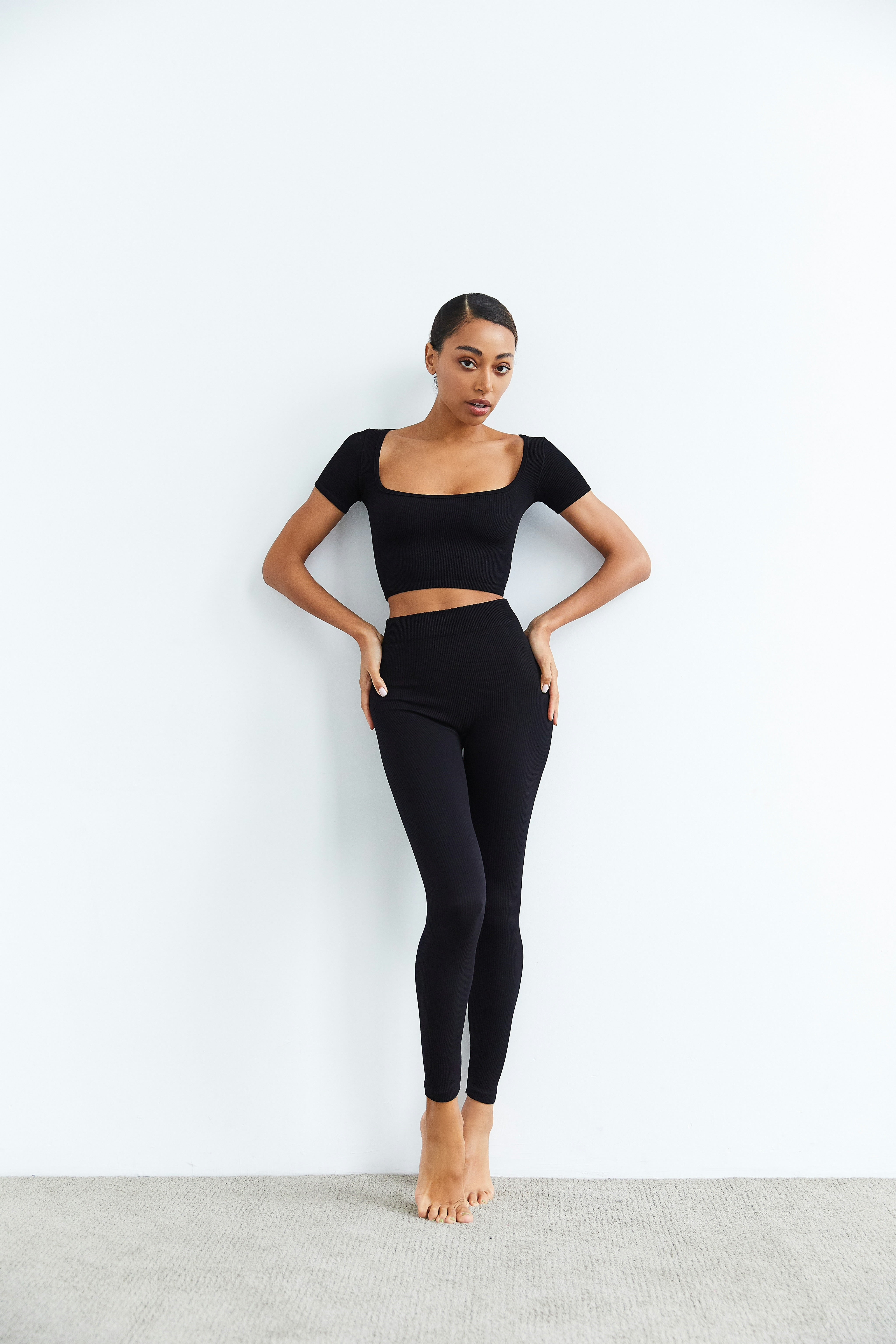 Легінси в рубчик на вісокій посадці, виготовлені із м’якої та еластичної мікрофібри. Тканина повторює рухи тіла, дарує відчуття легкості та комфорту.